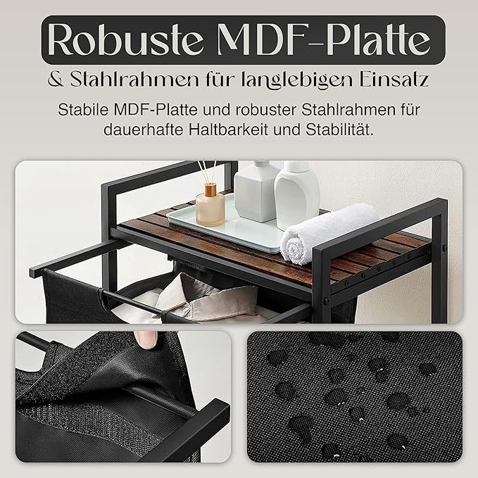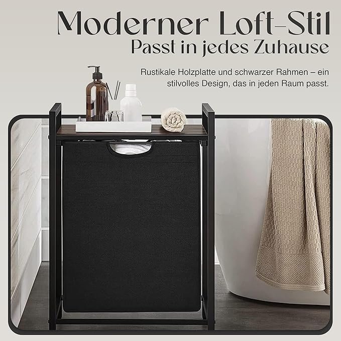 ✔️【𝐑𝐨𝐛𝐮𝐬𝐭𝐞𝐫 𝐖ä𝐬𝐜𝐡𝐞𝐤𝐨𝐫𝐛 】Praktischer Wäschekorb mit einem Fassungsvermögen von 65 Litern, gefertigt aus robustem MDF und Stahl. Ideal als Wäschekorb für das Badezimmer oder den Waschraum. Perfekt als Wäschekorb, Wäschesammler oder Wäschesortierer für Kleidung, Unterwäsche und Handtücher. Passt in jedes Zuhause und sorgt dank seines modernen Loft-Designs in rustikalem Braun und Schwarz für Ordnung. Durch das zeitlose Design fügt er sich harmonisch in jedes Interieur ein.
