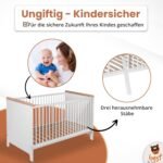 🇪🇺 EU-Herstellung für höchste Qualitätsstandards: Unser Gitterbett wird mit Stolz in der EU hergestellt, unter Einhaltung strenger Qualitätsstandards und Vorschriften. Diese Herkunftsgarantie bedeutet, dass Sie ein Produkt von hoher Qualität erhalten, das den höchsten Sicherheitsstandards entspricht und Ihrem Kind einen sicheren und komfortablen Schlafplatz bietet. 🏆🛡️