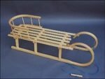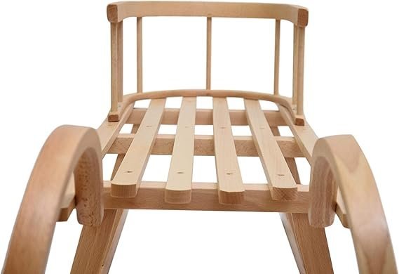 aus stabilen Buche-Massivholzleisten, die nicht nur optisch ansprechend, sondern auch äußerst langlebig sind. Die Rückenlehne ist für maximale Stabilität fest verschraubt, kann jedoch bei Bedarf im Handumdrehen abgenommen werden – ideal, um den Schlitten flexibel für verschiedene Altersgruppen und Einsatzzwecke anzupassen. -