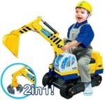 Best For Kids Sitzbagger in Gelb mit 2 Schaufeln & Kinder-Bauhelm – Robustes Outdoor-Spielzeug für kleine Baumeister