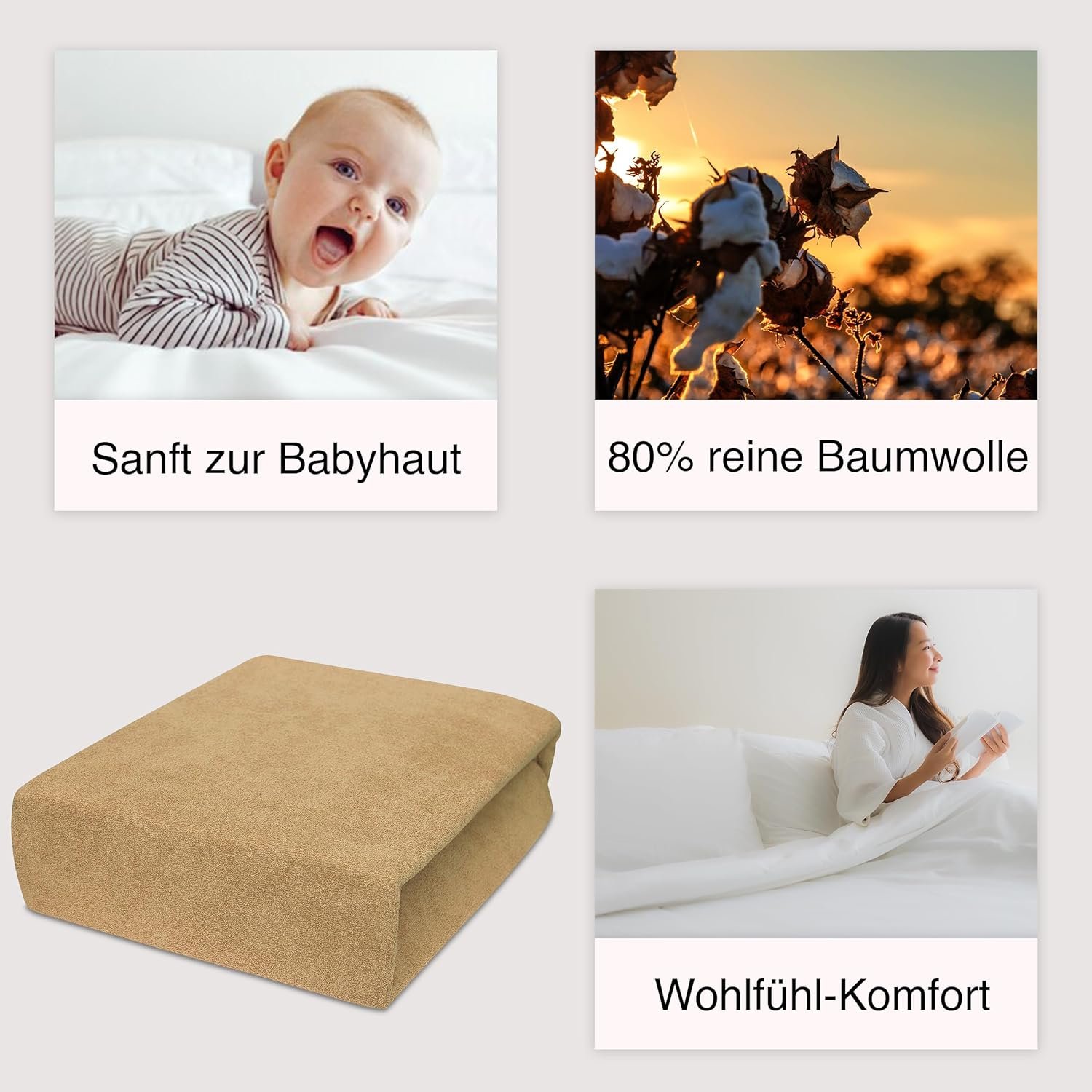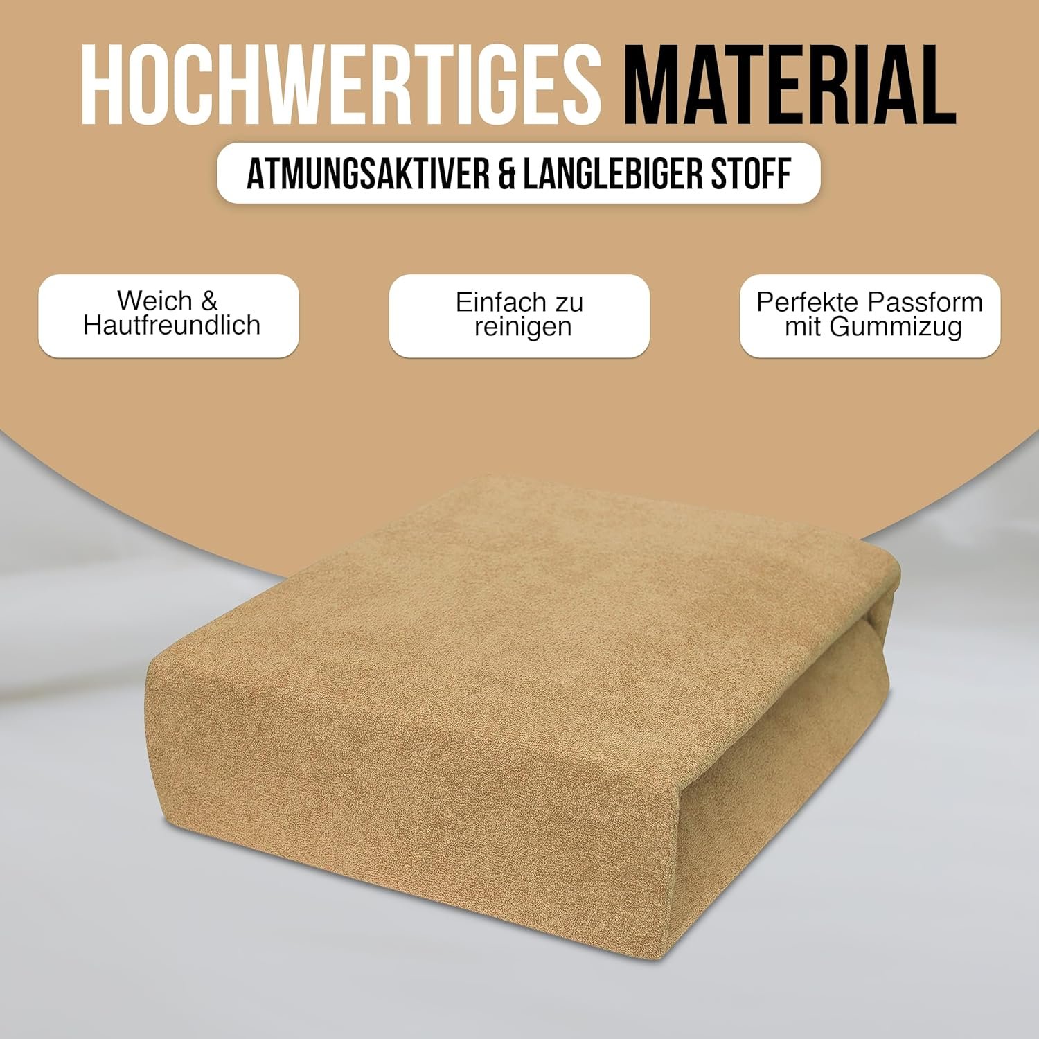 3. Das fein gewebte Jersey-Material wiegt ca. 160 g/m² und ist nach Öko-Tex Standard 100 geprüft. Es ist hautfreundlich, atmungsaktiv und formstabil. Selbst nach häufigem Waschen behält das Laken seine Form, bleibt weich und komfortabel und sorgt für hygienisches, dauerhaft angenehmes Schlafen.