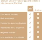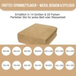2. Dank des praktischen Rundumgummibands passt das Spannbettlaken perfekt auf Matratzen bis ca. 25 cm Höhe bei Erwachsenen und bis ca. 20 cm bei Kinderbetten. Es sitzt sicher, verrutscht nicht und bietet eine besonders weiche, anschmiegsame Oberfläche, die für stabilen Halt und hohen Schlafkomfort sorgt.