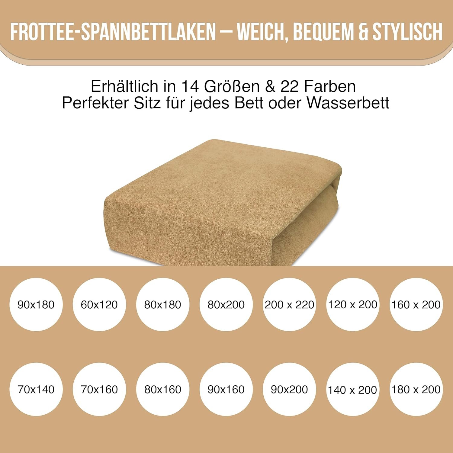 5. Geliefert wird ein einzelnes Spannbettlaken in der gewählten Größe und Farbe. Farbabweichungen sind möglich, da Rostbraun optisch orange wirken kann und Creme hellgelb erscheint. Abweichungen entstehen durch Licht, Bildschirmeinstellungen und fotografische Darstellung, wodurch die Originalfarbe leicht variieren kann.