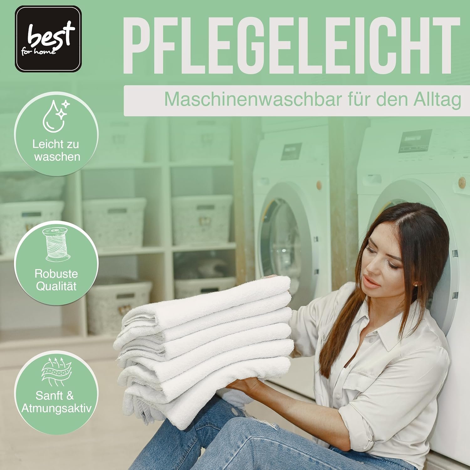 4. Als pflegeleichtes Naturprodukt ist das Spannbettlaken bis 40 °C maschinenwaschbar, trocknergeeignet im empfindlichen Programm und bei mittlerer Temperatur bügelbar. Hergestellt in der EU, garantiert es hohe Qualität, Langlebigkeit und Umweltbewusstsein und überzeugt durch einfache Pflege und Alltagstauglichkeit.
