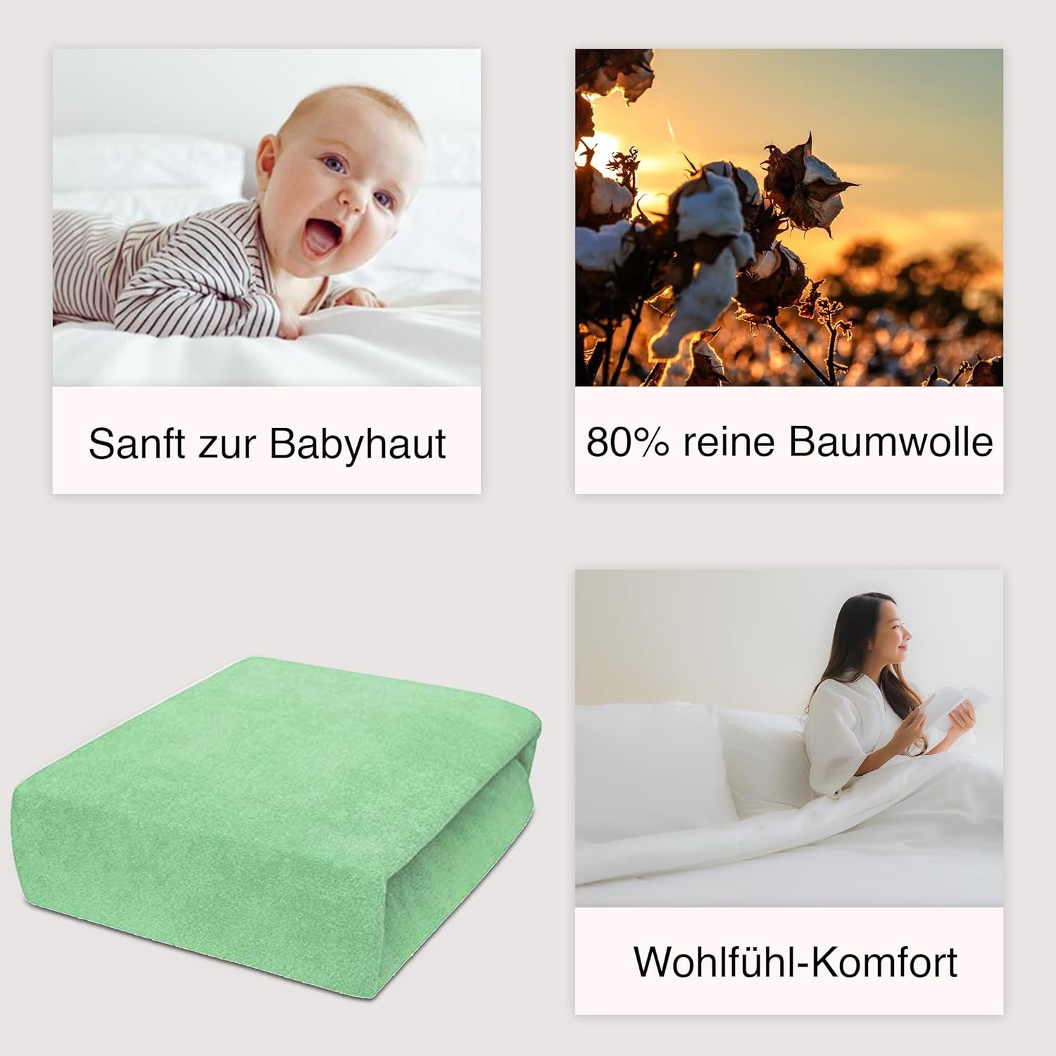 Best for Kids Spannbettlaken Spannbetttuch 100% Baumwolle Jersey in 22 Farben und 9 Größen (120×200, Erbsengrün)