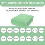2. Dank des praktischen Rundumgummis passt das Spannbettlaken optimal auf Matratzen bis ca. 25 cm Höhe für Erwachsene und bis ca. 20 cm für Kinderbettmatratzen. Es sitzt sicher, verrutscht nicht und bietet eine besonders weiche, anschmiegsame Oberfläche für stabilen Halt und komfortables Schlafen.