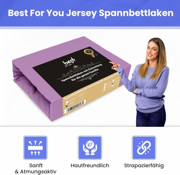Hochwertiges Jersey‑Spannbettlaken in 22 exklusiven Farben und 9 Größen – ideal für Standard- und Kinderbettmatratzen, gefertigt aus 100 % Baumwolle für besonders weichen, elastischen Liegekomfort.