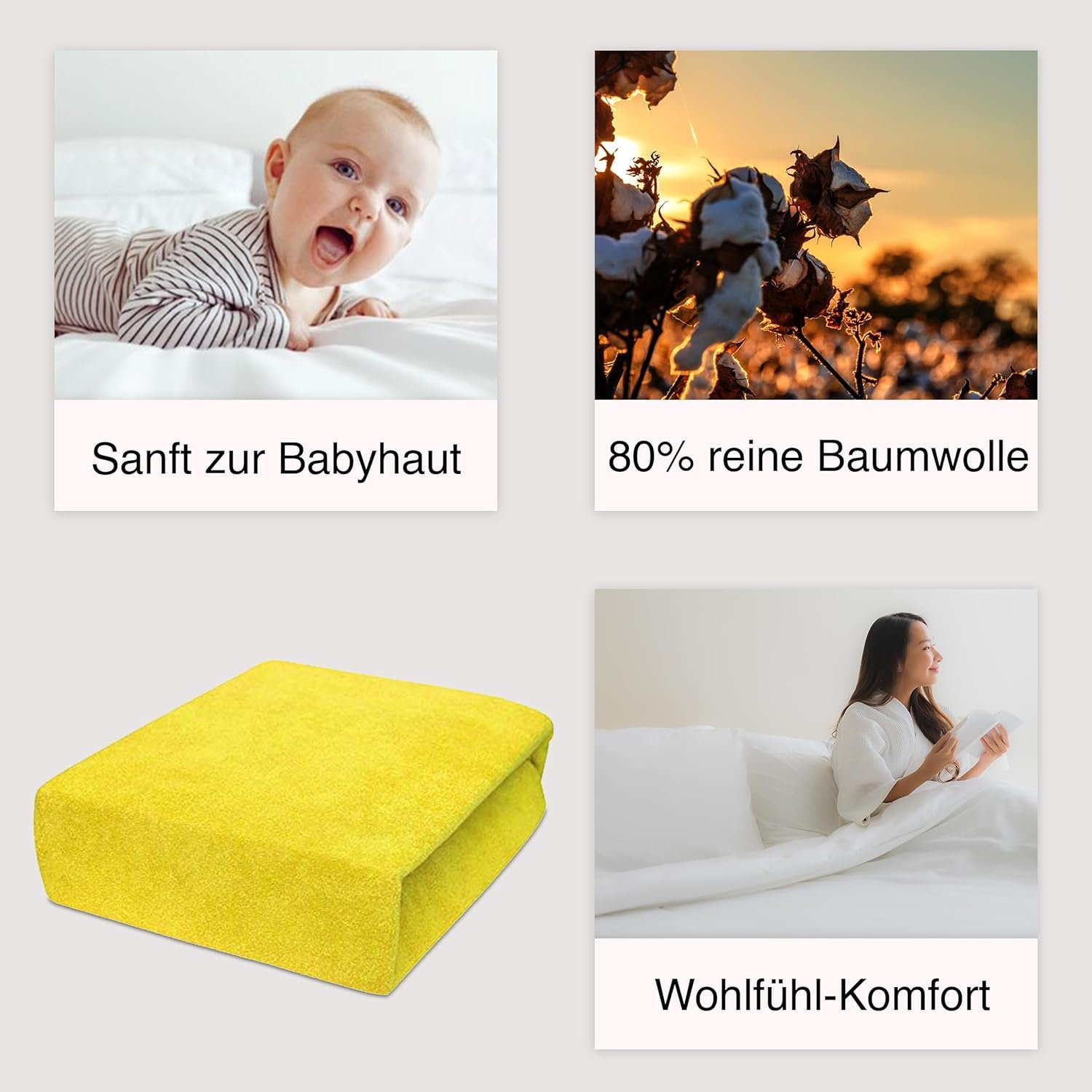 Best for Kids Spannbettlaken Spannbetttuch 100% Baumwolle Jersey in 22 Farben und 9 Größen (120×200, Gelb)