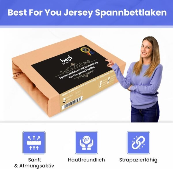 Hochwertiges Jersey‑Spannbettlaken in 22 exklusiven Farben und 9 Größen – ideal für Standard- und Kinderbettmatratzen, gefertigt aus 100 % Baumwolle für besonders weichen, elastischen Liegekomfort.