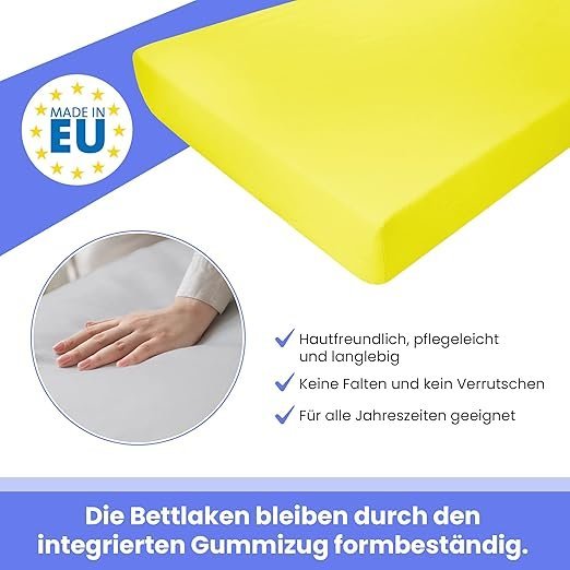 Best for Kids Spannbettlaken Spannbetttuch 100% Baumwolle Jersey in 22 Farben und 9 Größen (140×200, Zitronengelb)