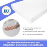 Das praktische Gummiband gewährleistet einen sicheren Halt und verhindert lästiges Verrutschen. Geeignet für Matratzen bis 25 cm Höhe (Erwachsene) sowie bis 20 cm Höhe (Kinderbetten). Das Laken sitzt stets faltenfrei und sorgt für eine glatte, gepflegte Optik. -