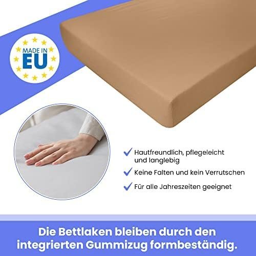 Best for Kids Spannbettlaken Spannbetttuch 100% Baumwolle Jersey in 22 Farben und 9 Größen (70×160, Beige)