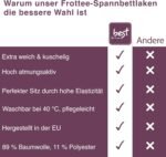 Rundumgummibands passt das Spannbettlaken perfekt auf Matratzen bis ca. 25 cm Höhe bei Erwachsenen und bis ca. 20 cm bei Kinderbetten. Es sitzt sicher, verrutscht nicht und bietet eine besonders weiche, anschmiegsame Oberfläche, die für stabilen Halt und hohen Schlafkomfort sorgt.