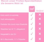 2. Das praktische Rundumgummiband garantiert perfekte Passform auf Matratzen bis ca. 25 cm Höhe bei Erwachsenengrößen und bis ca. 20 cm bei Kinderbetten. Das Laken sitzt sicher, verrutscht nicht und bietet eine besonders weiche, anschmiegsame Oberfläche, die Komfort und Stabilität beim Schlafen unterstützt.