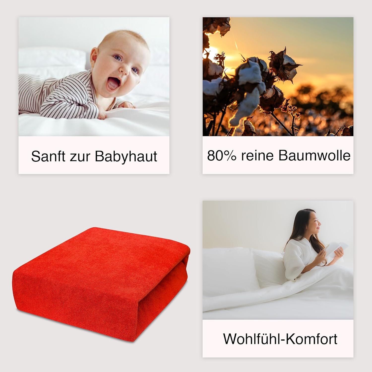 Best for Kids Spannbettlaken Spannbetttuch 100% Baumwolle Jersey in 22 Farben und 9 Größen (80×180, Rot)