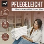4. Als pflegeleichtes Naturprodukt kann das Spannbettlaken bei bis zu 40 °C in der Maschine gewaschen werden. Es ist zudem für den Trockner im empfindlichen Zyklus geeignet und kann bei mittlerer Temperatur gebügelt werden. Die Herstellung in der EU garantiert verlässliche Qualitätsstandards und langlebige Materialien für den täglichen Einsatz.