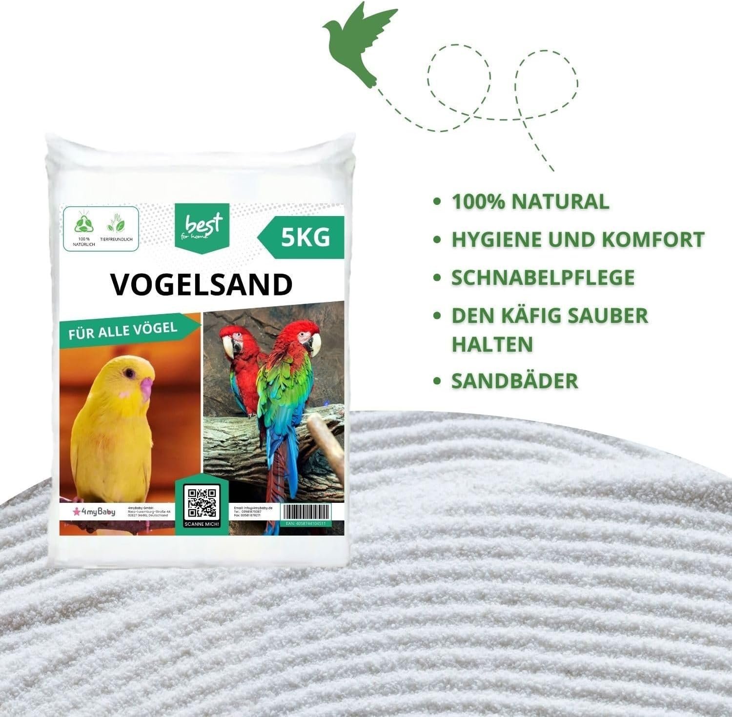 Hochwertiger Quarzsand speziell für Vogelkäfige entwickelt Frei von schädlichen Zusätzen für die Gesundheit Ihrer Vögel Fein gemahlen und angenehm für die empfindlichen Füße Ihrer Vögel Unterstützt das natürliche Schnabelpflegeverhalten Leicht zu handhaben und zu dosieren, um die Sauberkeit des Käfigs zu erhalten