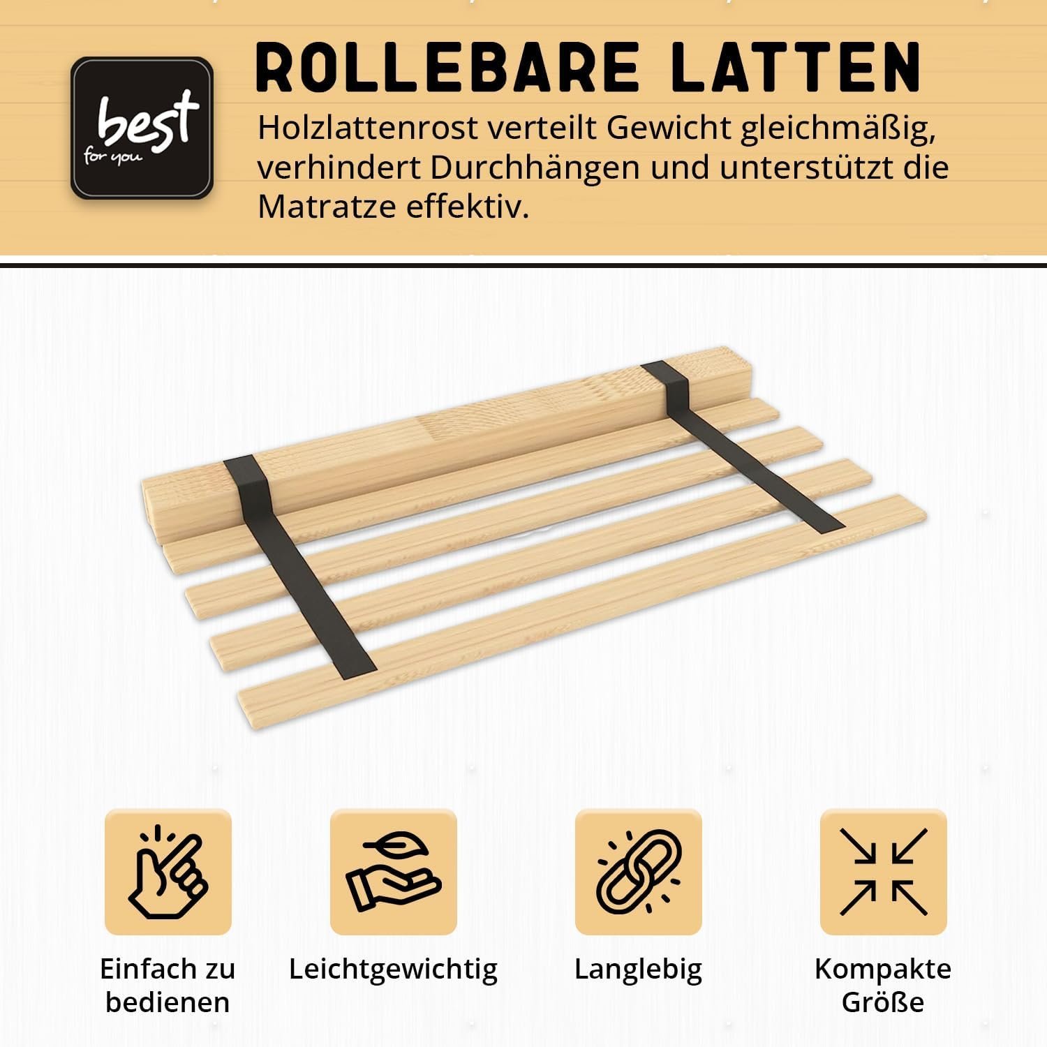 Best For You Rollrost aus 15 oder 20 massiven stabilen Holzlatten Geeignet für alle Matratzen – in viele Größen 60×120 cm – 140×200 cm