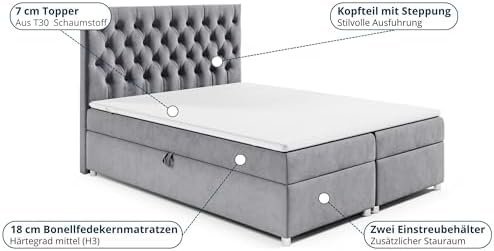 ✔️ [𝐏𝐫𝐞𝐦𝐢𝐮𝐦-𝐊𝐨𝐦𝐟𝐨𝐫𝐭 & 𝐄𝐫𝐠𝐨𝐧𝐨𝐦𝐢𝐬𝐜𝐡𝐞 𝐔𝐧𝐭𝐞𝐫𝐬𝐭ü𝐭𝐳𝐮𝐧𝐠] Das Best For Home Boxspringbett Trinity K-14 kombiniert einen langlebigen 7-Zonen-Bonell-Federkern mit einer H3-Komfortmatratze (18 cm) und einem 7 cm starken PUR-Schaum-Topper. Diese Kombination sorgt für perfekte Druckentlastung, optimale Körperanpassung und ein harmonisches Liegegefühl. Erhältlich u.a. als Boxspringbett 140×200, 160×200 oder 180×200 sowie als Bett 180×200 mit Matratze – ideal für jedes Schlafzimmer.