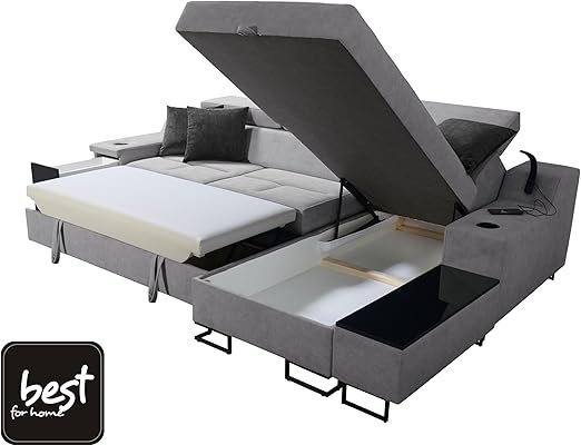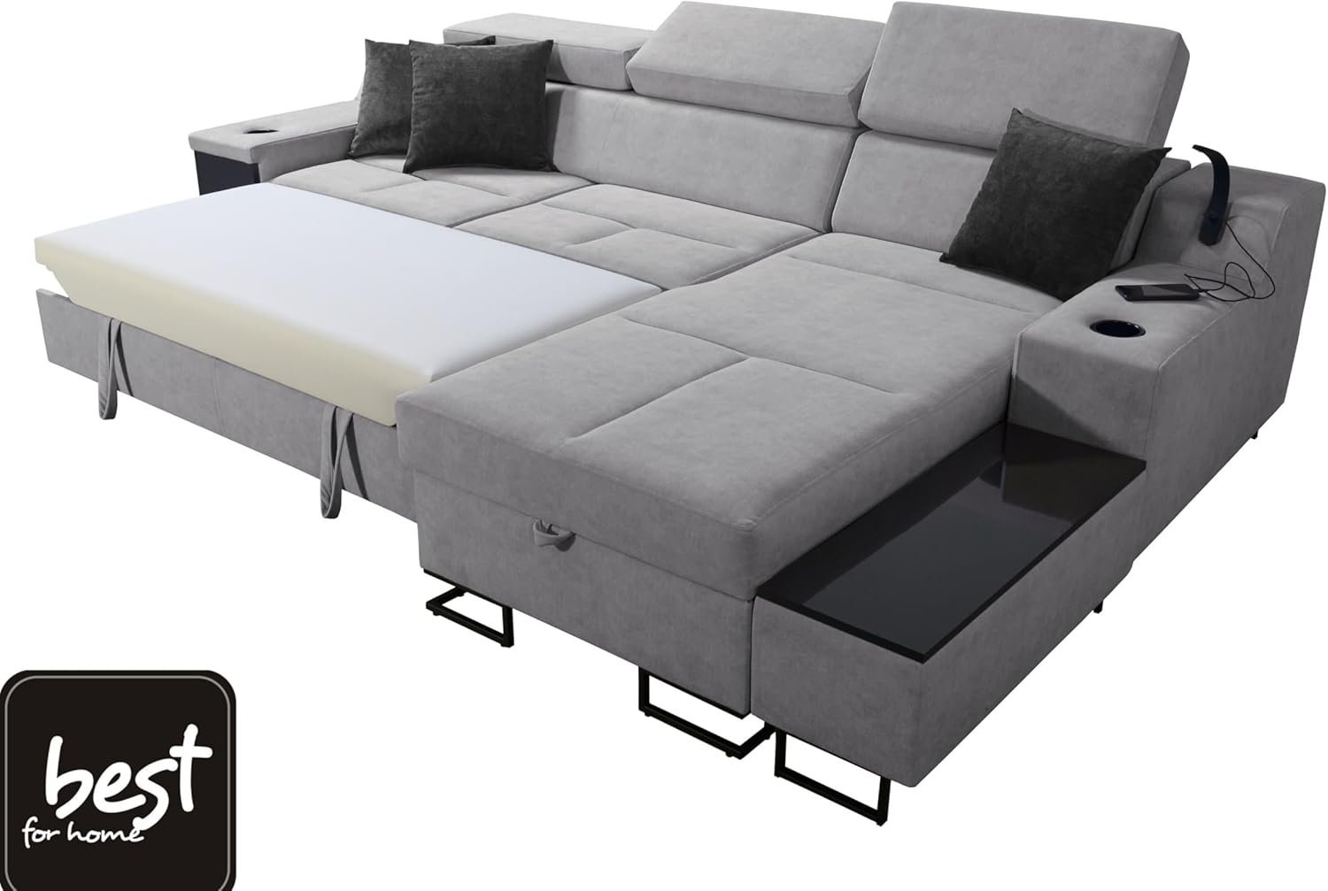 Dieses großzügige Ecksofa bietet nicht nur eine bequeme Sitzgelegenheit für die ganze Familie, sondern überzeugt zusätzlich mit einer integrierten Schlaffunktion. So verwandeln Sie Ihr Wohnzimmer im Handumdrehen in ein gemütliches Gästezimmer und sorgen jederzeit für erholsamen Schlafkomfort.✅ Hochwertige Verarbeitung: