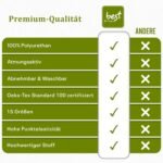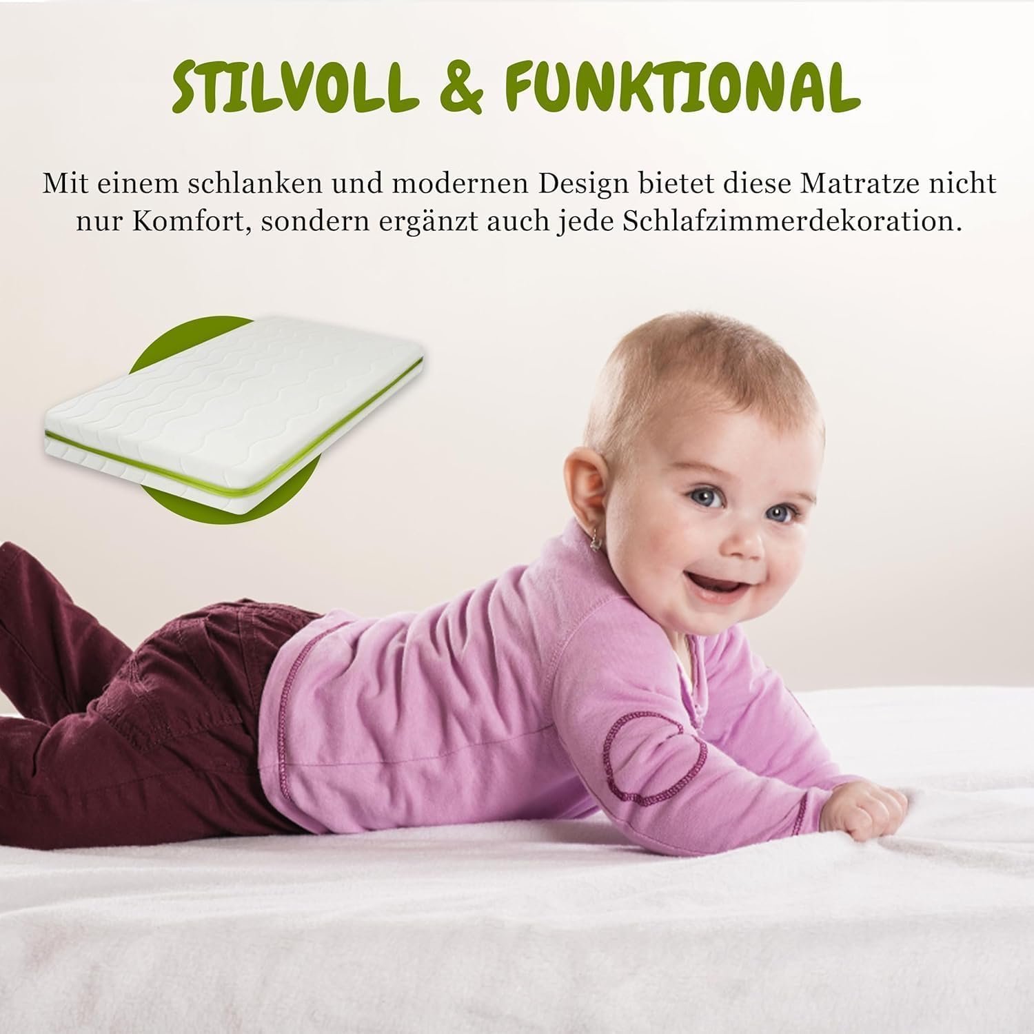 Die Matratze ist TÜV-zertifiziert sowie nach ÖkoTex Standard 100 schadstoffgeprüft und bietet daher höchste Sicherheit. Mit einer Gesamthöhe von etwa elf Zentimetern und einem stabilen Kern von rund zehn Zentimetern wird sie in der EU gefertigt und ist in vielen attraktiven Farben und Größen erhältlich.