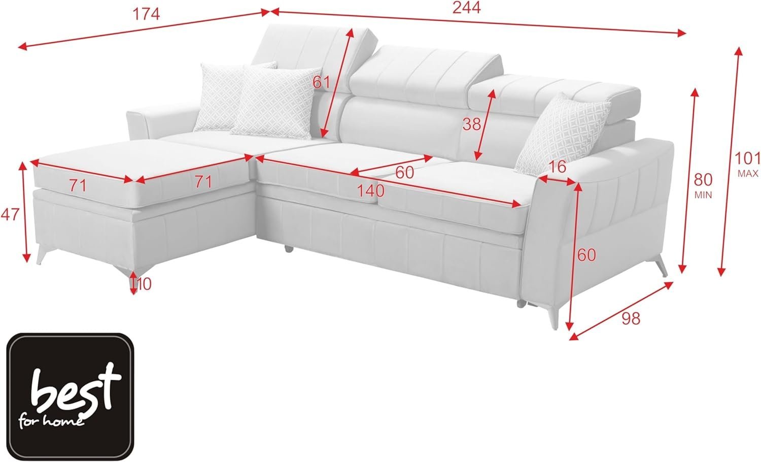 - Das Ecksofa BARRY ist der Inbegriff von Vielseitigkeit: Schlaffunktion, geräumiger Bettkasten für zusätzlichen Stauraum. Dank der Kissen werden Sie echten Komfort erleben.