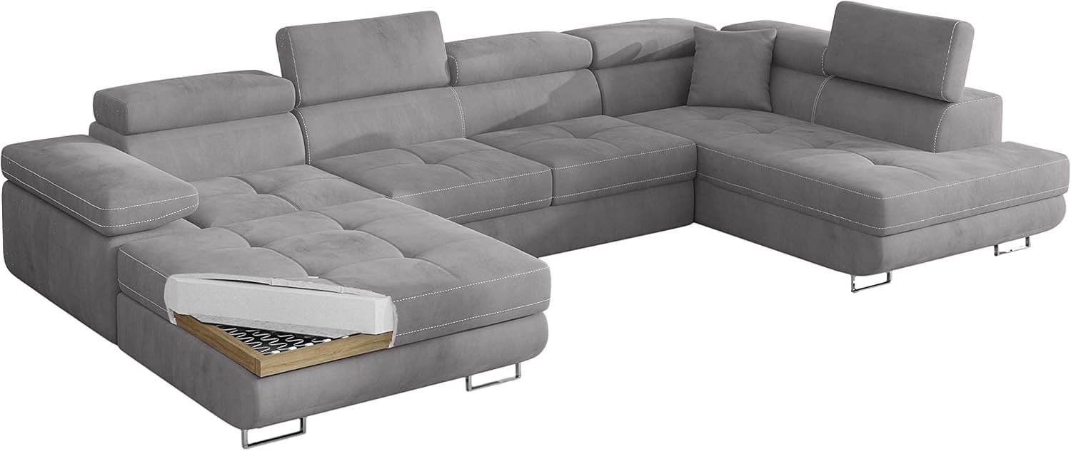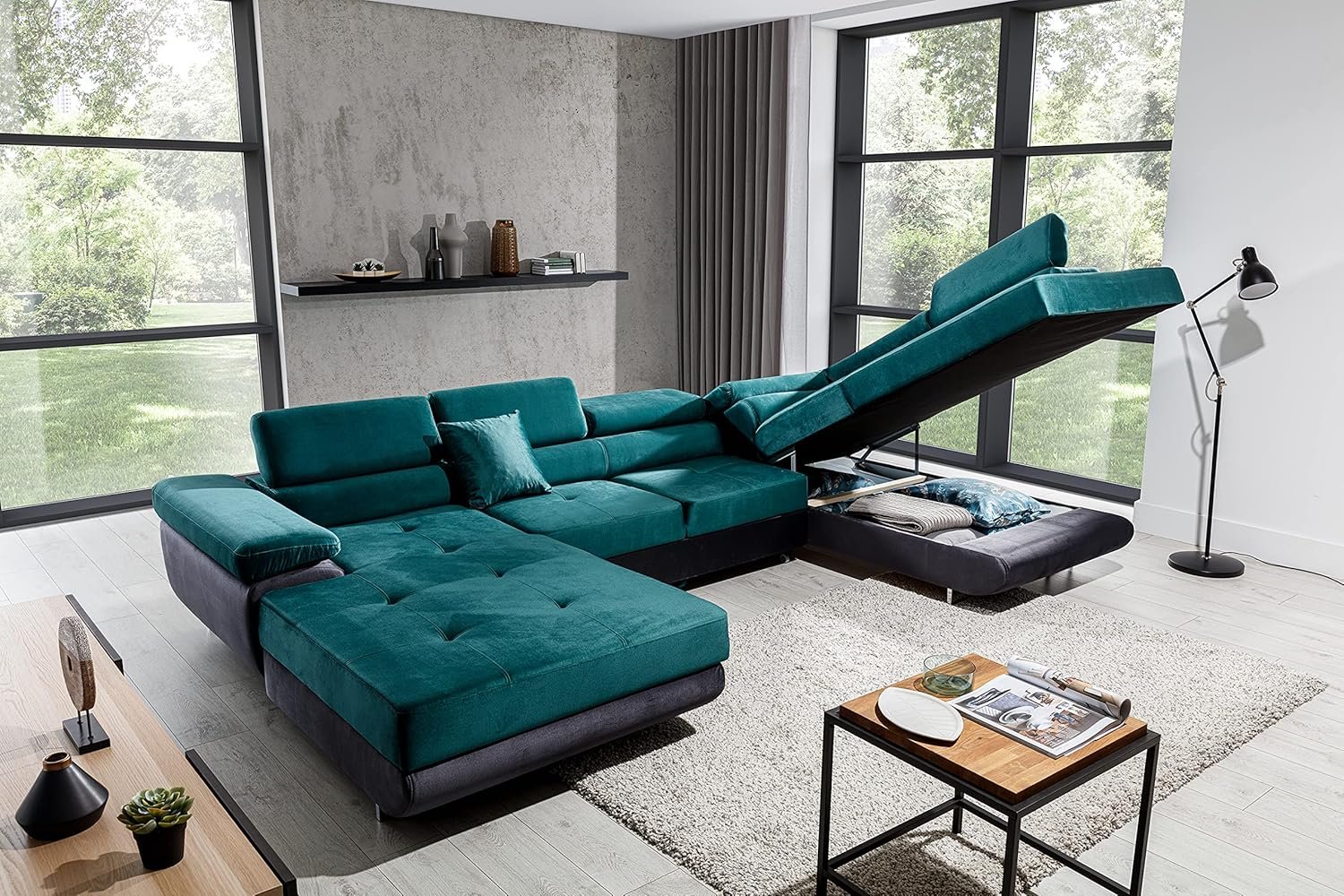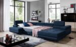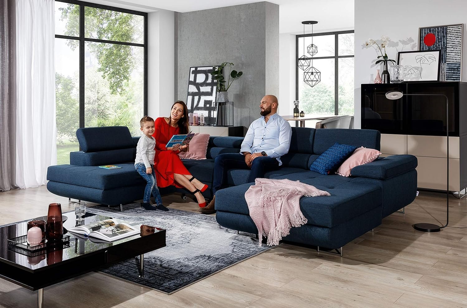 Dieses geräumige U-förmige Ecksofa bietet eine praktische Bettfunktion und verwandelt Ihr Wohnzimmer im Handumdrehen in einen gemütlichen Schlafbereich. -