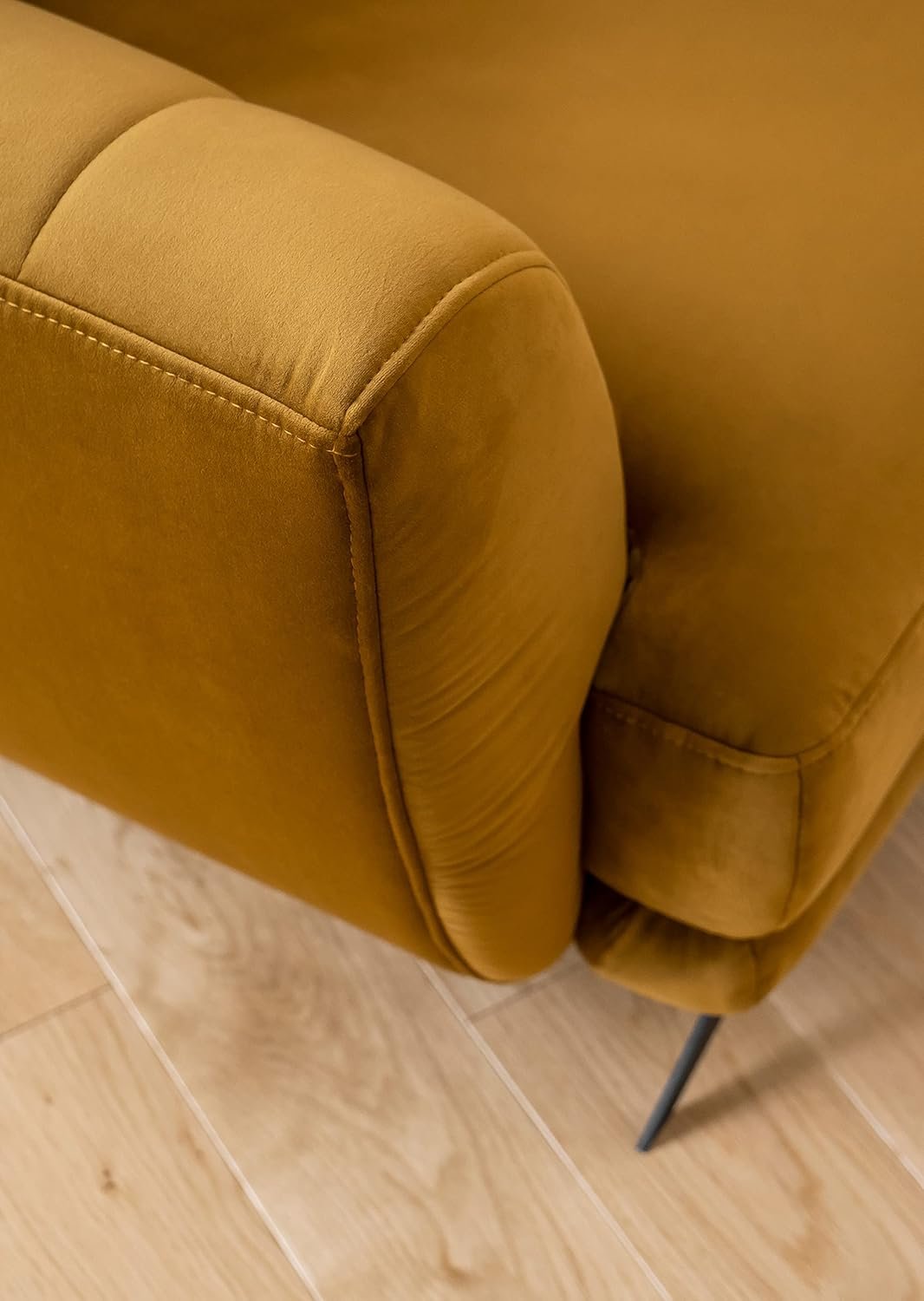 Weich gepolsterte Armlehnen bieten zusätzlichen Komfort beim Sitzen oder Liegen. Sie unterstützen die entspannte Körperhaltung und runden das gemütliche Design des Sofas harmonisch ab. -