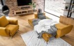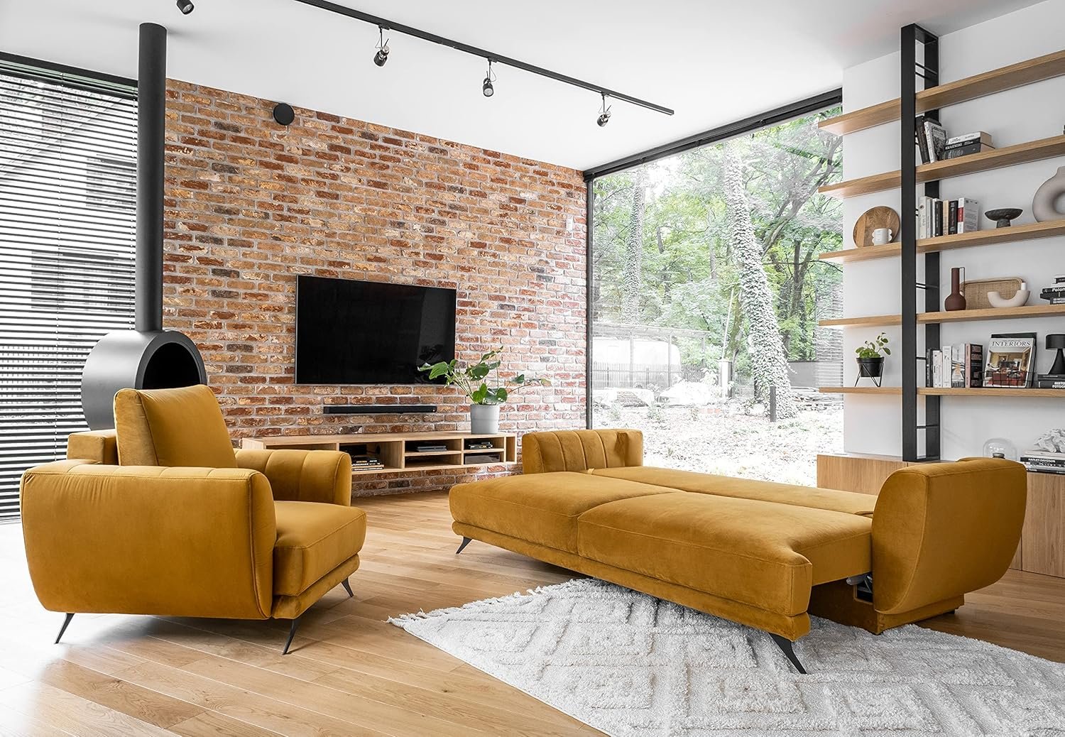 Eltap Set Megis – Sofa mit Bettfunktion, Sessel und Hocker – modernes Polstermöbel-Set für Ihr Zuhause