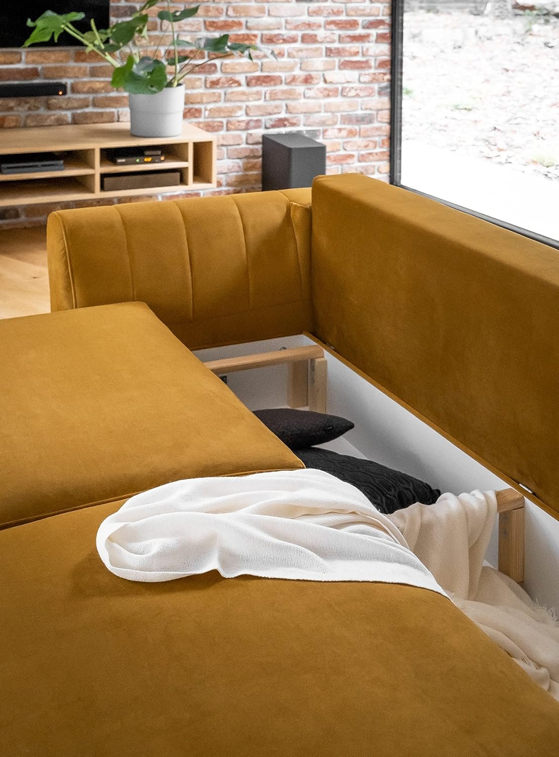Das Sofa lässt sich mit wenigen Handgriffen in eine großzügige Liegefläche verwandeln – ideal für Übernachtungsgäste oder entspannte Abende. Die Schlaffunktion ist unauffällig integriert und einfach zu bedienen. -