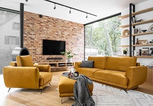 Das Sofa Megis stiehlt die Herzen der Fans von Minimalismus und Eleganz. Die schlichte Form, die unkomplizierte Gestaltung und die filigranen Nähte sind beim Entspannen nicht spürbar. Die hohen Armlehnen in Sonderform sind mit zarten vertikalen Nähten verziert, die diesem Sofa Charakter verleihen. Die Verwendung von hohen Beinen mit einer Höhe von 13 cm erleichtert es Ihnen, die Sauberkeit unter dem Sofa zu wahren. Weiche, großzügige Kissen machen das Entspannen zum reinen Vergnügen.