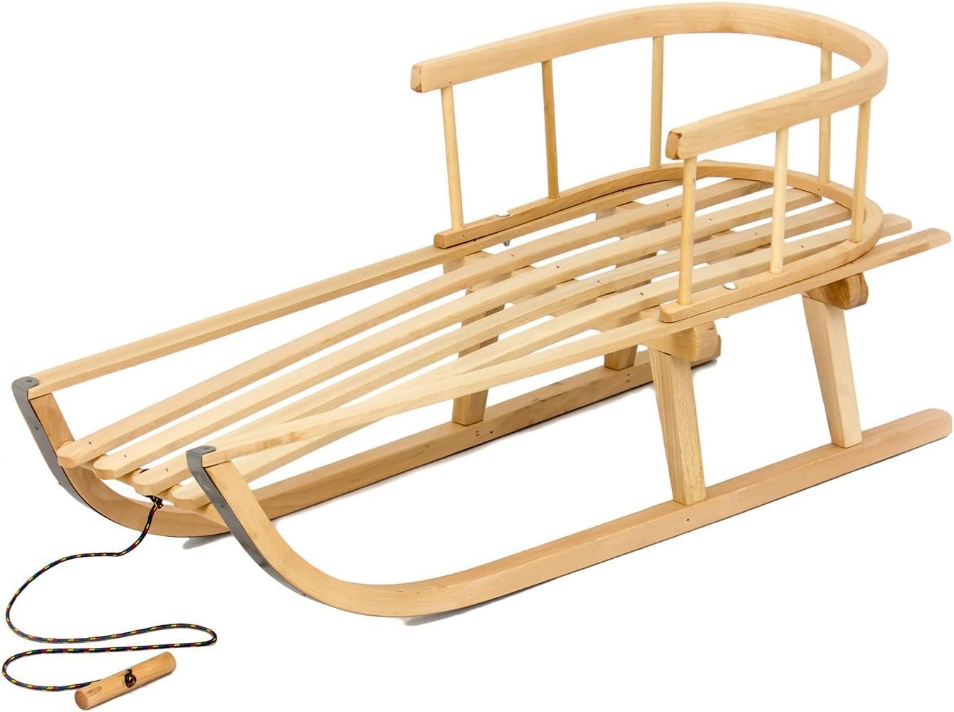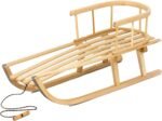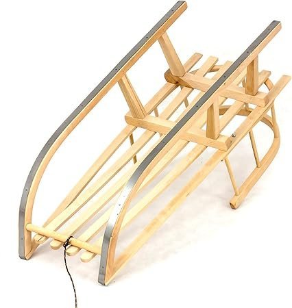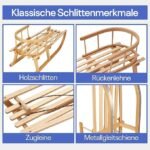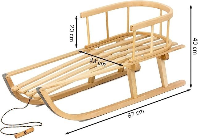 Stabiler Holzschlitten mit Rückenlehne – Der Schlitten besteht aus hochwertigem Holz und ist mit einer Rückenlehne ausgestattet, die für zusätzliche Sicherheit und Komfort sorgt. Besonders geeignet für kleine Kinder, die beim Rodeln mehr Halt benötigen.