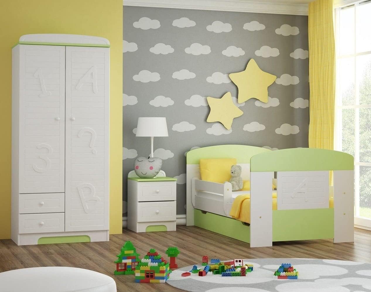 Durch die hochwertige Herstellung und den Einsatz langlebiger Materialien sind alle Möbelstücke besonders stabil und robust. Die solide Bauweise gewährleistet Sicherheit, Widerstandsfähigkeit und Langlebigkeit, sodass Kleiderschrank, Nachttisch und Kinderbett auch bei intensiver Nutzung zuverlässig bleiben und lange Freude bereiten.