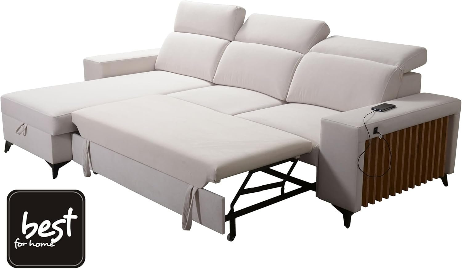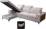 The BENNY corner sofa combines style with practicality. It easily converts into a comfortable bed thanks to its built-in sleeping function, making it ideal for overnight guests. In addition, it includes a spacious bedding storage compartment that allows you to neatly store blankets, pillows, or other household items, helping keep your living room organized.