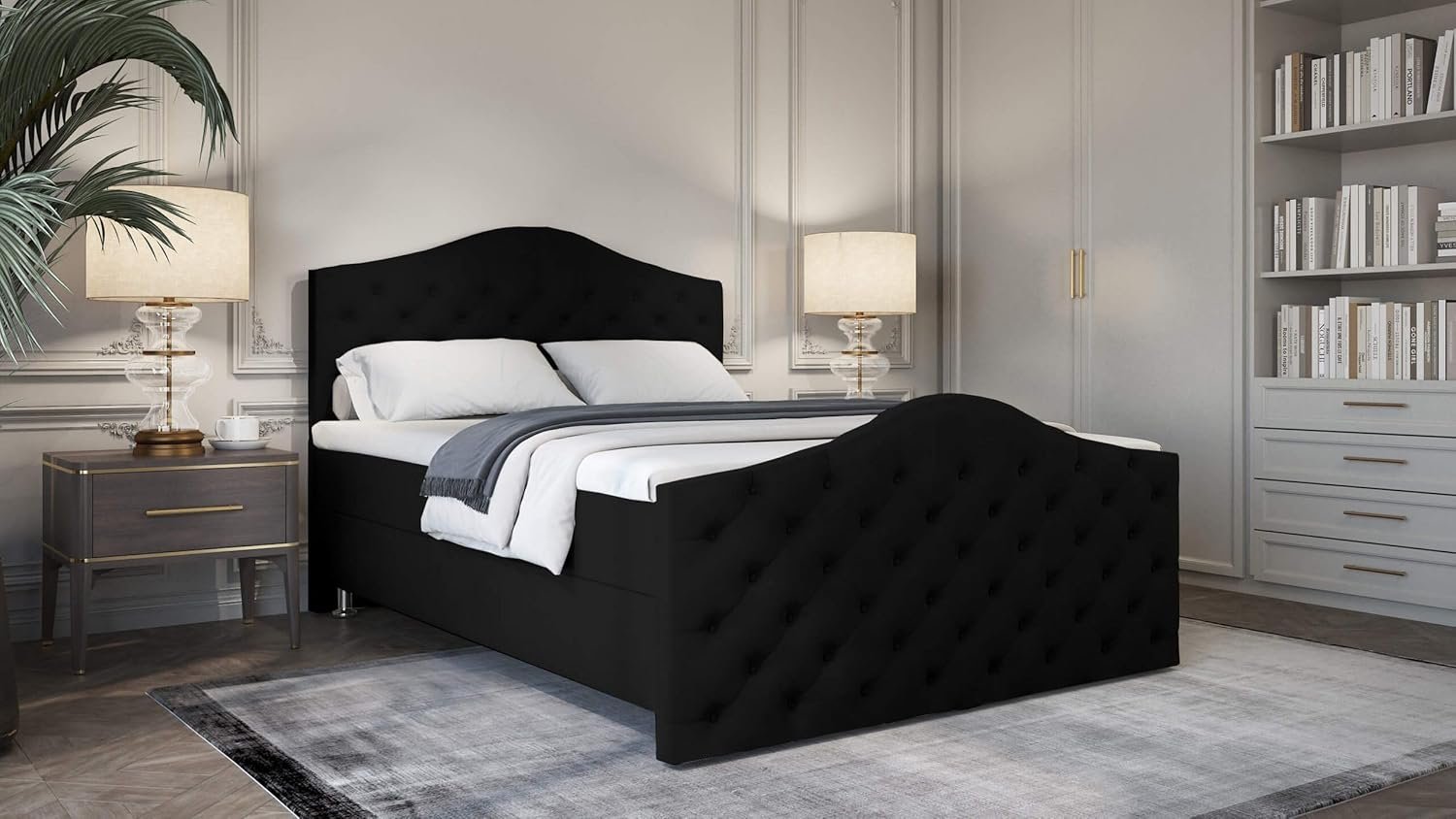 Roma Boxspringbett | Bonellfederkern inkl. 7-Zonen Topper T-30 | Boxspringbett mit Bettkasten | Polsterbett | Boxspringbett mit Matratze | Bettkastenbett mit Lieferung und Montage