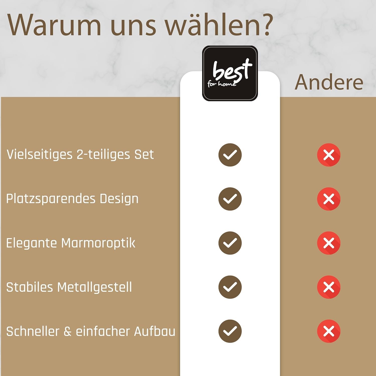 Ob im Wohnzimmer, Schlafzimmer oder Gästezimmer – das Couchtisch-Set überzeugt durch kompakte Maße und vielseitige Funktionalität bei gleichzeitig stilvollem Auftritt.