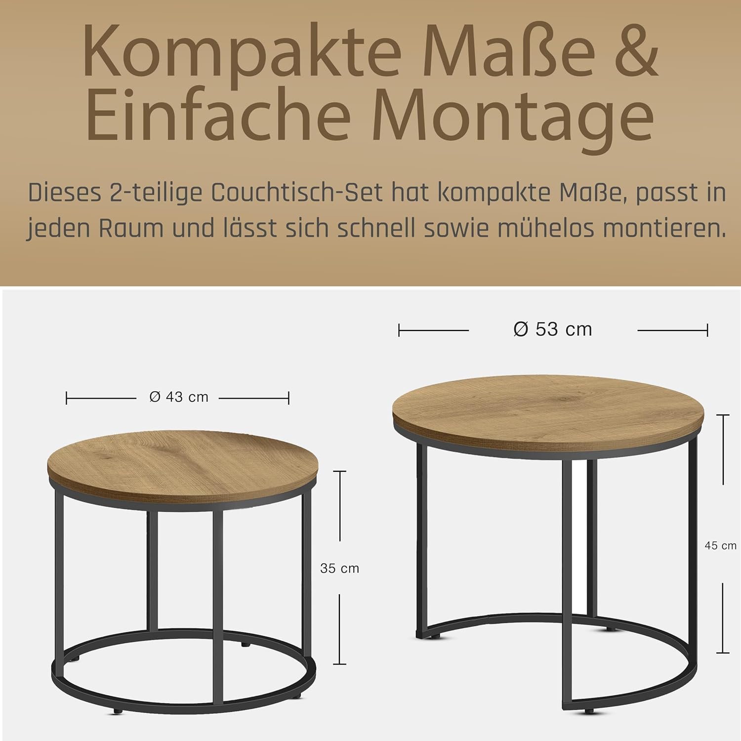 Das Set besteht aus zwei unterschiedlich großen Tischen, wobei der kleinere platzsparend unter dem größeren verstaut werden kann. Ideal für kompakte Wohnräume mit flexibler Nutzung.