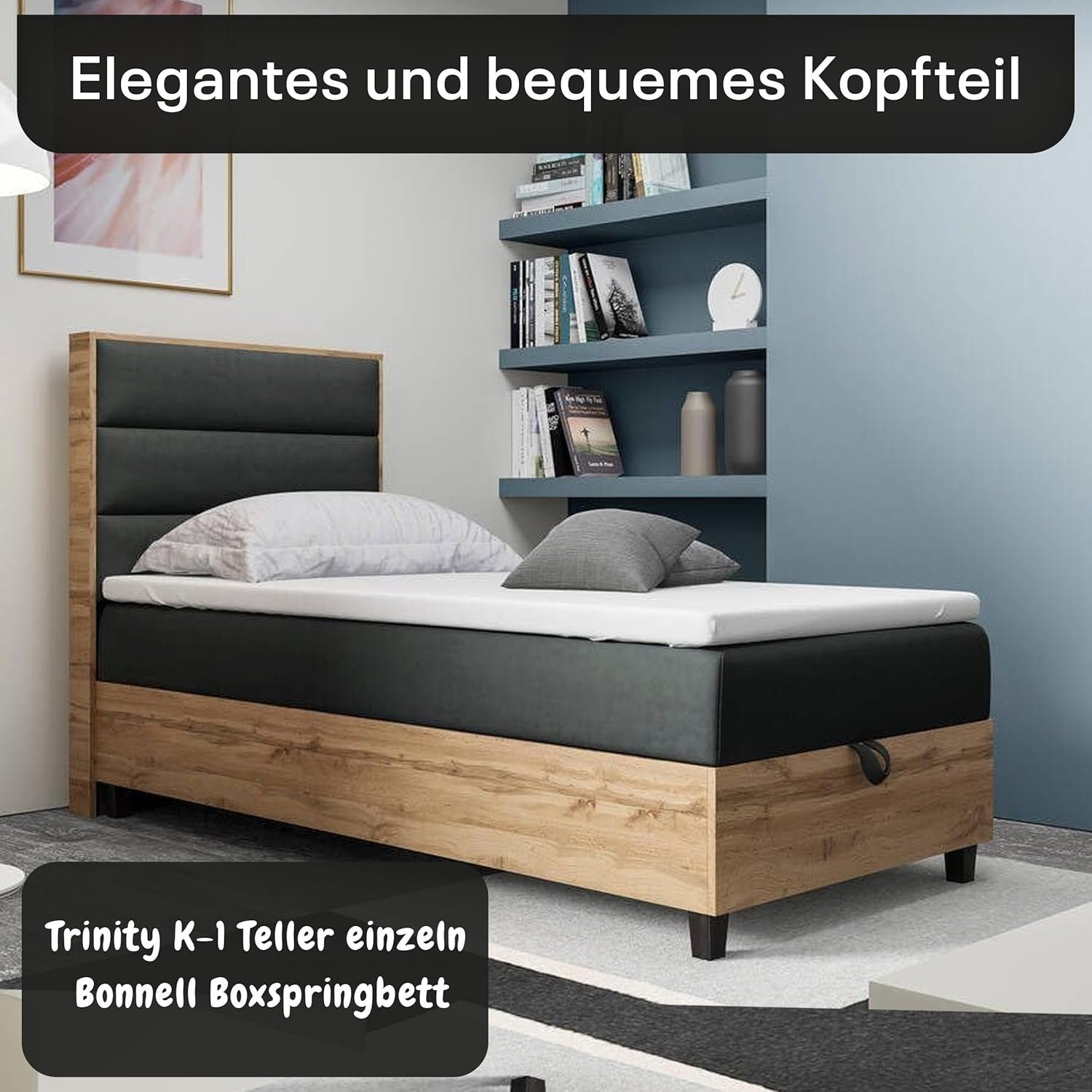 • Exclusive Trinity K-1 Single Bed : Experience luxury with the exclusive Trinity K-1 single bed, available in sizes 70×200, 80×200, 90×200, and 100×200 cm! This box spring bed combines supreme comfort with elegant design. No matter which model you choose, it will revolutionize your sleeping habits. For added convenience, the 70×200 bed with storage box features integrated storage, making it perfect for any room and meeting a variety of needs!