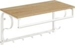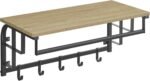 „Wandregal mit Haken – Rustikales Holz und schwarzes Metallgestell, 30 x 66 x 27 cm – Ideal für Flur, Küche oder Badezimmer“